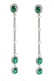 Morning Dew - Classic Long Dangle Earrings with Emerald & White CZs