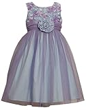 Bonnie Jean LITTLE GIRLS 4-6X LAVENDER-PURPLE AQUA-BLUE BONAZ ROSETTE MESH OVERLAY Special Occasion Flower Girl Easter Party Dress Details & Features