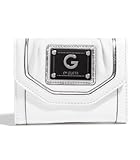 G by GUESS , Make a statement each time you reach for your wallet. This mini-organizer features a metallic trim and croc-embossed finish to give you clear-cut style before you even get dressed. ? Faux-leather with a textured metallic border and patent trim. Croc-embossed center and interior lining. Silver-tone hardware. ? Black front plaque with silver-tone logo. Front flap with snap button closure. ? Tri-fold design ? 10 credit card slots ? 1 bill pocket ? 2 interior multipurpose pockets and 1 exterior zipper pocket ? 5 ¼"W x 4"H Handbags > Wallets ...